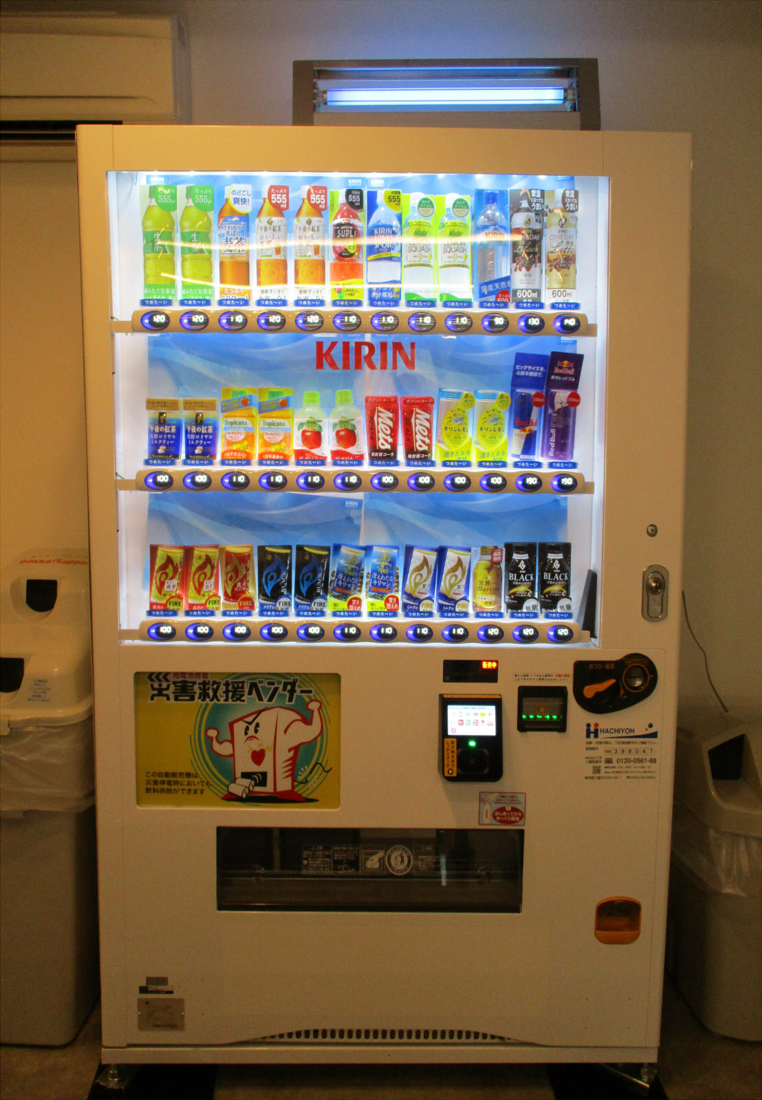 キャッシュレス決済付きの自動販売機がございます。
